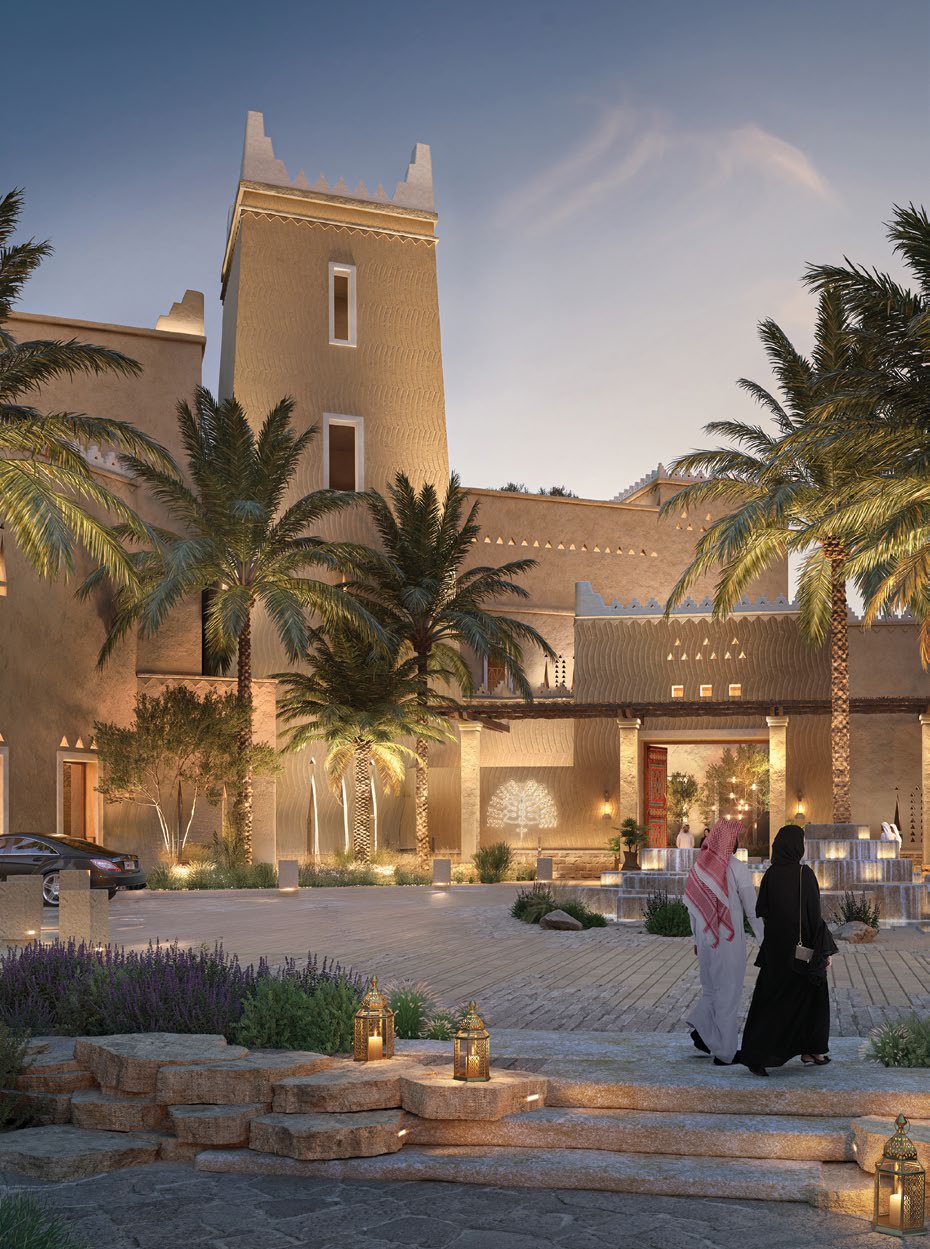 Raffles Residences Diriyah is a luxury residential development located in Diriyah, Saudi Arabia, offering suites, duplexes, and private villas inspired by Najdi architecture and integrated into the natural landscape of Wadi Hanifah. It combines cultural heritage, contemporary design, and five-star hotel services by Raffles (Accor Group), emphasizing refinement, exclusivity, premium hospitality, and well-being. The brochure is primarily descriptive and does not specify surface areas in square meters (mixed-use, office, retail) or the number of parking spaces.